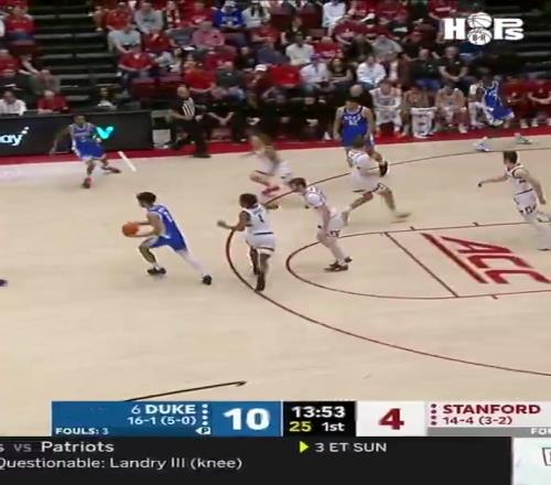 此役,状元热门、杜克大学球星卡梅隆·布泽尔表现神勇,他在上半场就轰下20分9篮板2助攻3抢断。